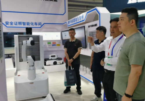 融合機器視覺與人工智能技術的“智慧無人製證車間解決方案”,吸引了觀展嘉賓的目光,該方案運用智能化工業機器人及高度自動化的製證生產係統,大大提高了製證效率、節約人工成本。